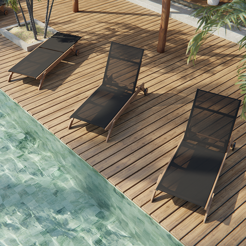 Linha composta por Cadeira com e sem Braços e Espreguiçadeira.